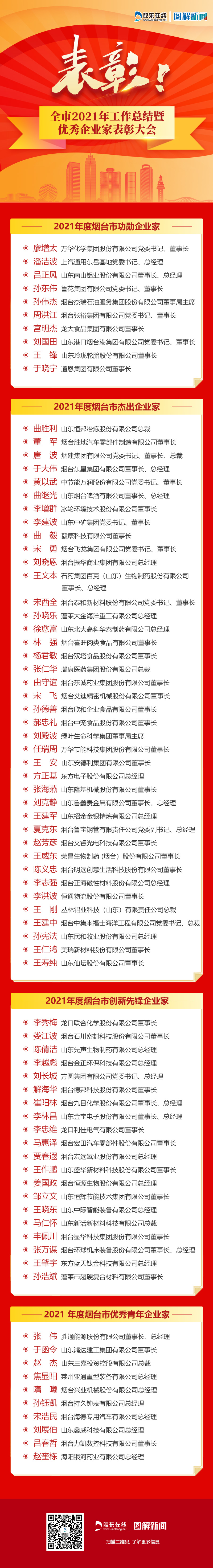 胶东在线:表彰!烟台市2021年优秀企业家名单发布