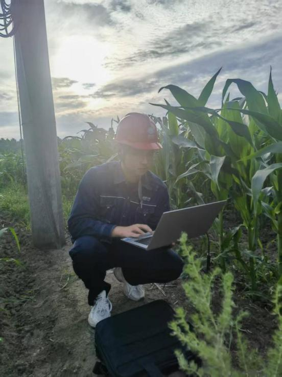 东北运维区赵天序在兴安盟某运维项目中工作。正值灌溉季节,为确保农田的正常灌溉,他加班加点,紧急处理故障线路开关的消缺工作,为草原沃野注入电力活力。