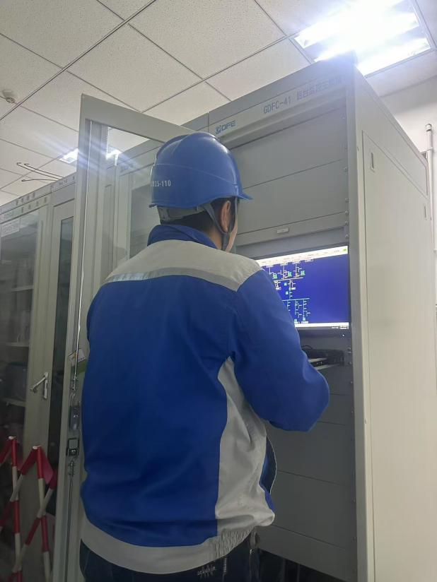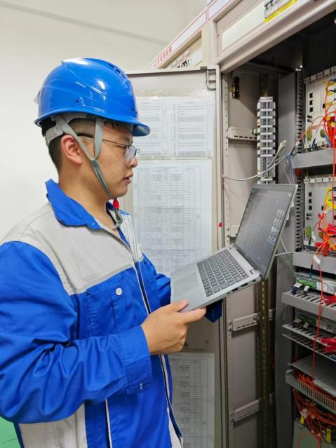 在北京高温高湿的极端天气下,售后人员白菊在220kV某变电站改造220kV线路测控。此次工作为套壳改造,需要配线加调试。配线过程中,他在测控屏前一站就是几个小时。为了确保现场的安全以及停送电要求,配线完成后稍作短暂休息,他便马上投入到调试设备状态。他精准排查、高效调试,确保了设备顺利投运,稳定运行。