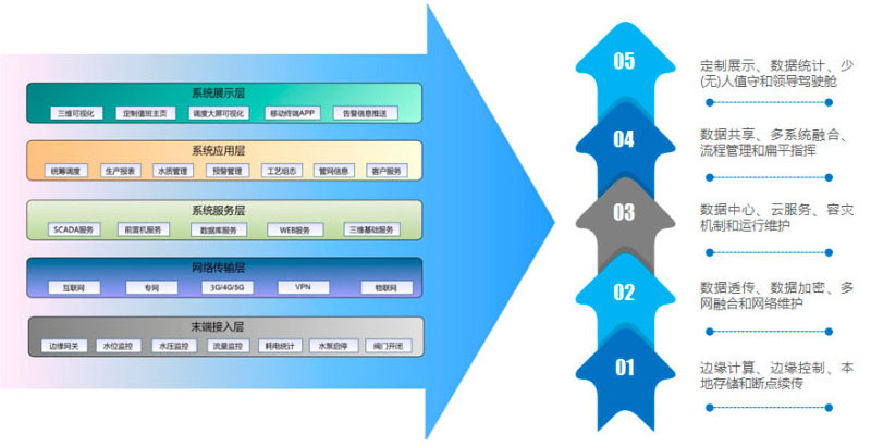 SCADA生产调度管理系统根据水务公司信息数据采集分析、整合存储,以应用为核心、需求为导向,运用传感、网络传输和信息处理技术,推进城市供水事务管理和公共服务信息化,提升供水事务管理服务水平和城市运行效率。