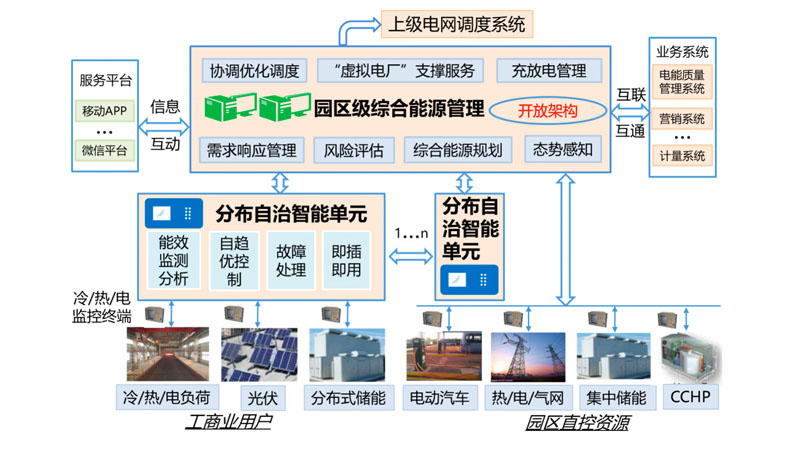 通过冷/热/电/气/水等综合能源的采集监测、能效分析等手段,实现设备运行状态实时掌握以及精细化的用能监测。通过态势感知、风险评估、协调优化调度等功能,根据预测或实测的冷、热、电、气负荷和能源单价,选择和控制能源系统运行状态,使能源消耗在整个运行阶段内都趋成本最低。通过虚拟电厂、需求响应等功能,参与调频调峰等辅助服务,获取额外收益。最终实现能源需求与生产供给实时管控,以及资源配置协调最优的目的。