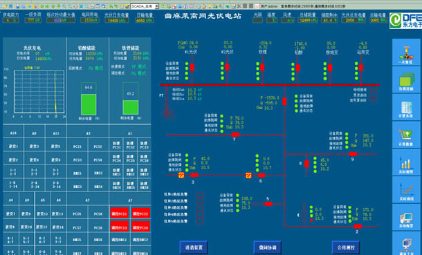 只配置光伏发电和储能系统,不配置柴油发电设备,对光伏电站的启停是一个很大的挑战;县城的总负荷远超预期,白天有光照但不充足时,铁锂储能系统需要频繁转换充放电模式;为解决这些难点,配置微网能源管理系统进行控制和调节。