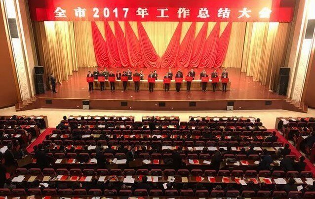 全市2017年工作总结大会在国际会展中心举行,市委副书记、市长张永霞出席并作重要讲话。大会对过去一年涌现出来的一批成绩突出的先进集体和先进个人给予表彰市领导为2017年度经济社会发展综合考核先进集体和先进个人代表颁奖,并兑现了制造业强市和创新驱动发展战略奖励政策。东方电子集团有限公司被授予“经济发展功勋企业”,公司党委书记、董事长杨恒坤被授予“经济发展功勋个人”荣誉称号。
