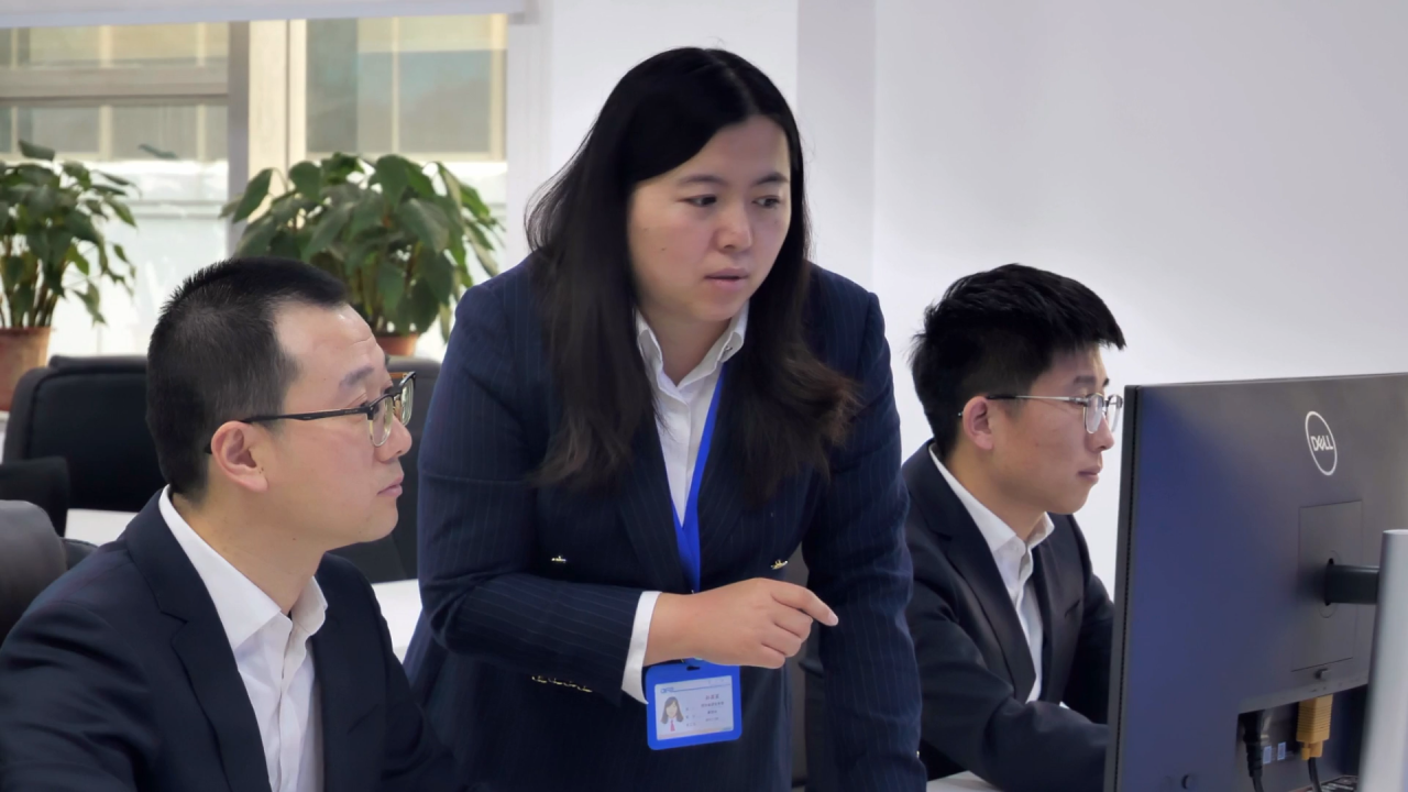 ▲孙英英与同事工作的场景