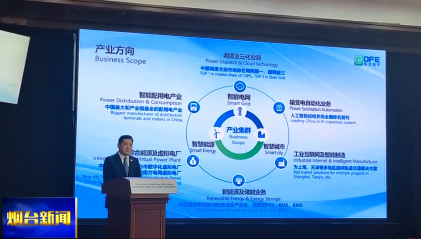 ▲烟台市与马尔代夫旅游和环境部共同举办“国际零碳岛屿建设和绿色低碳建设交流会”,东方电子集团董事长方正基作报告