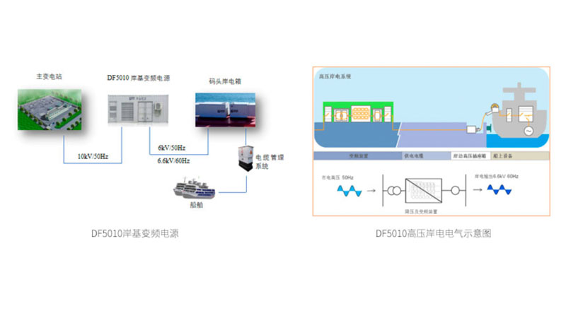 船舶停靠码头时需要燃烧大量的燃油发电,产生大量废气与噪声污染。港口船舶废气的排放控制,逐渐成为沿海港口城市大气污染治理的重要组成部分,而岸电技术是港口控制大气污染的有效手段之一。 DF5010系列岸基变频电源系统,分为高压变频电源和低压变频电源,通过变压变频,将变电站输入的电源变换到与船舶受电系统一致的电源,并输送到码头船舶的接入点(岸电箱),能承受船舶各类负荷冲击,确保输出电压/频率稳定,系统可靠,供电效率高。