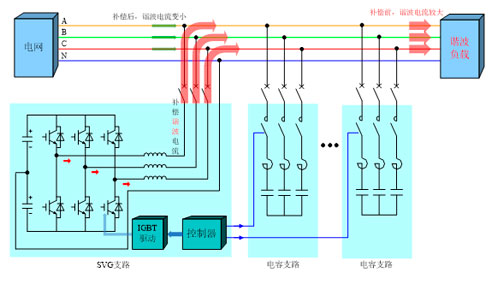 与固定电容器补偿联动,采用SVG的控制器,统一控制电容器的投切,既能减少体积又方便协调控制。